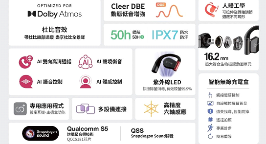 作為全球首款 Dolby 認證開放式 Atmos 耳機,ARC 3 開放式 AI 智能藍牙耳機系列無論是硬件本身,甚至是開發及生產,都必需符合 Dolby 的嚴格要求,由測試的用具、人員,到生產用的器材、成品的表現,都會由專人反覆檢測及評估,直至一切都達到指定標準後,該系列方可取得 Atmos 認證,絕對得來不易,但亦是對用家的最好保證。