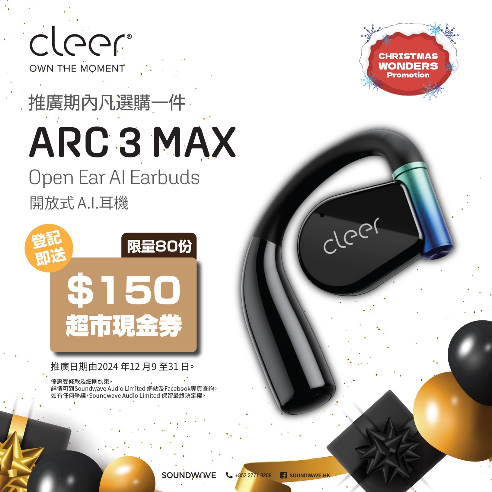 ⁉️ 凡於推廣期內購買CLEER ARC 3 MAX一件,完成登記即可換領$150 超市現金券。