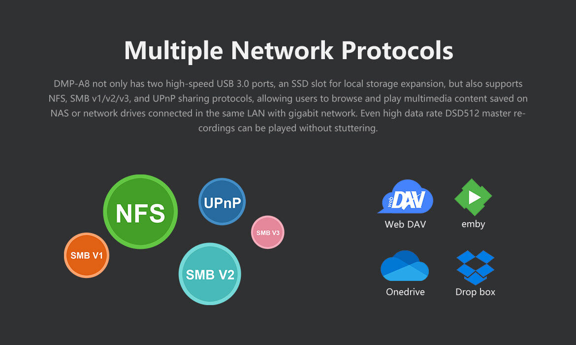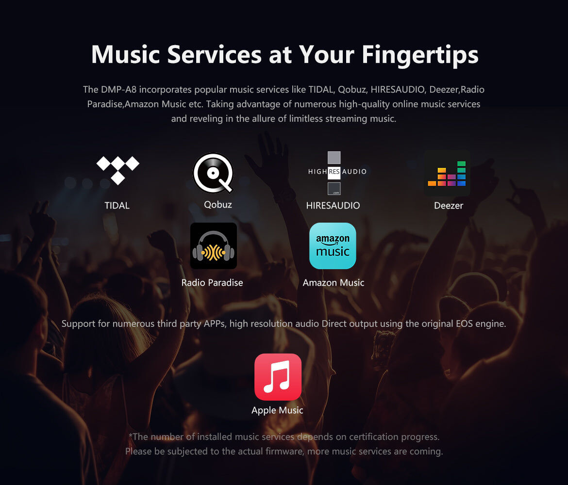 除原生內置串流平台如 Tidal/Qobuz / 網易雲音樂 外更可以安裝第三方軟件直接播放 Apple Music / KK Box 的發燒級串流解碼器。