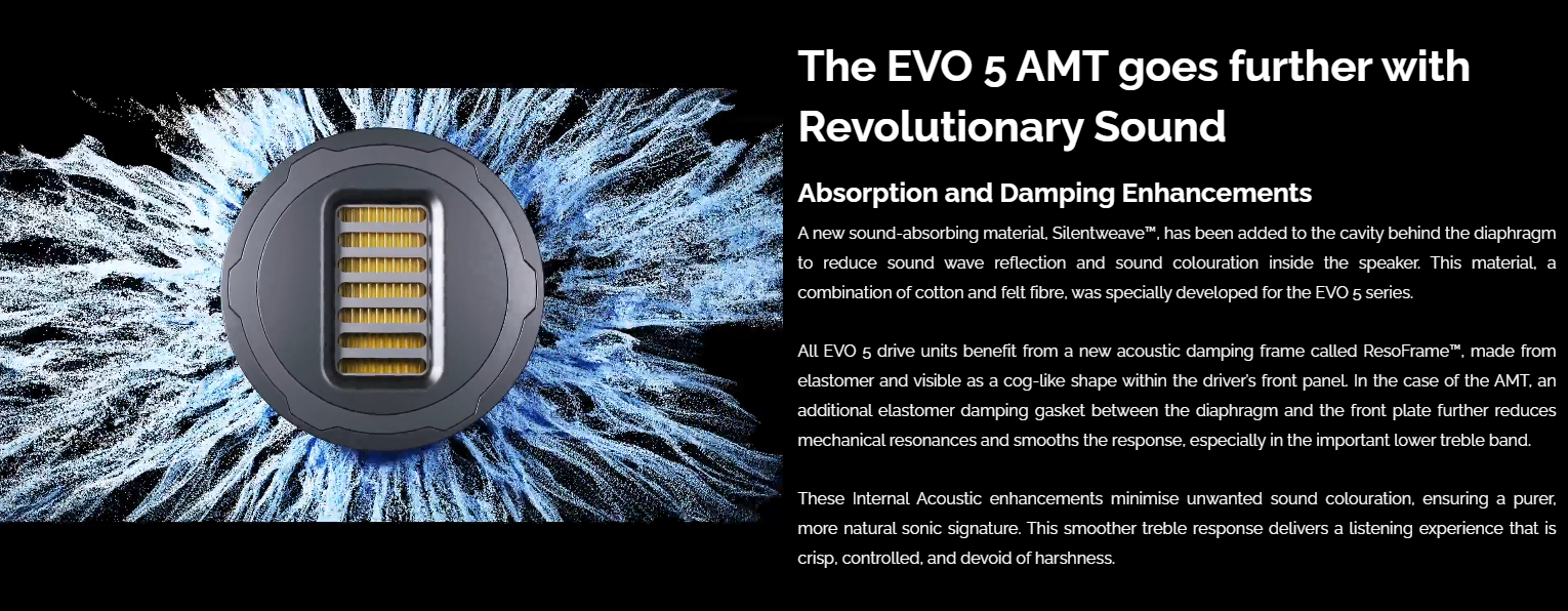 單元方面,使用比上一代面積更大的AMD高音單元,半球體中音(饅頭中音)亦重新設計,頻率響應更加線性順滑。
