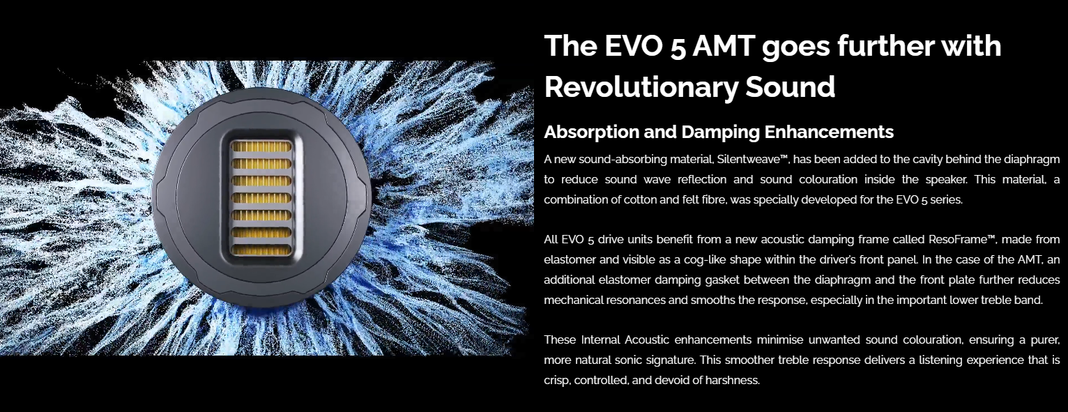 單元方面,使用比上一代面積更大的AMD高音單元,半球體中音(饅頭中音)亦重新設計,頻率響應更加線性順滑。
