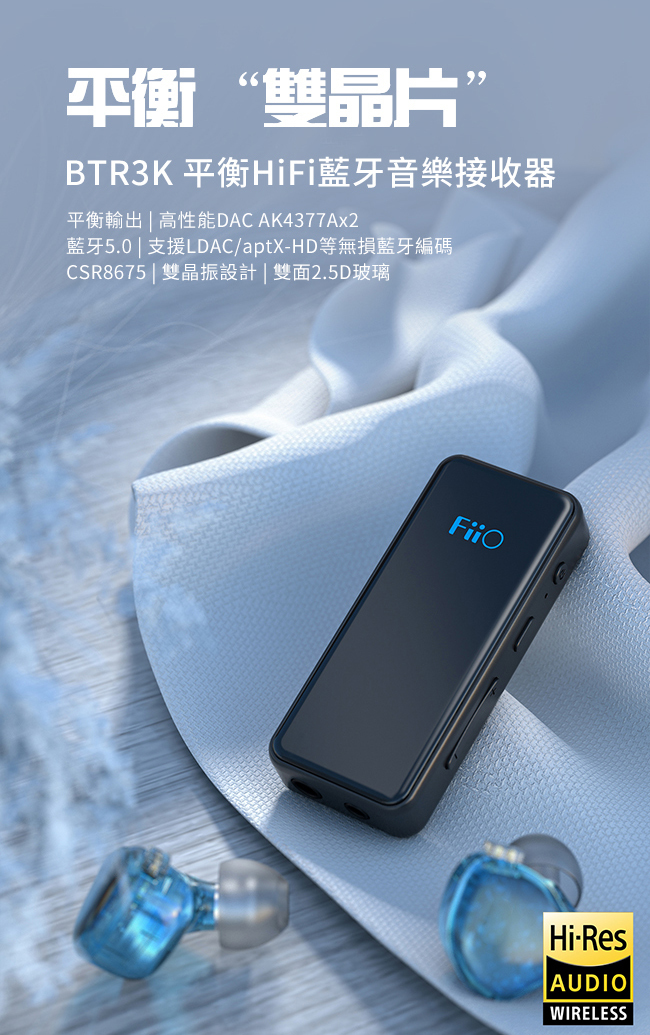 FiiO隨身DAC解碼音樂接收器BTR3K,升級換代性能大提升。