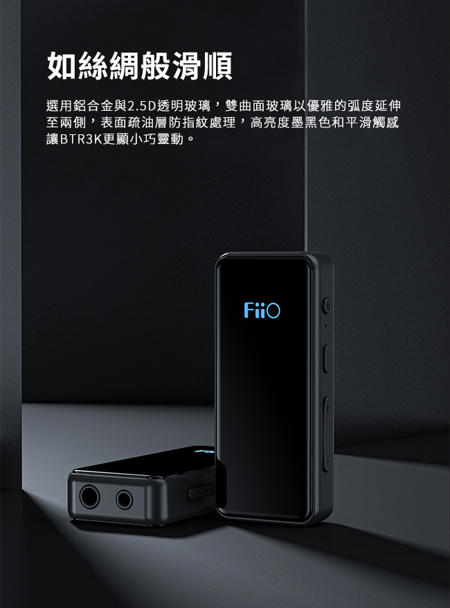 採用鋁合金與2.5D透明雙曲面玻璃,墨黑色平滑觸感盡顯BTR3K的獨特優雅。