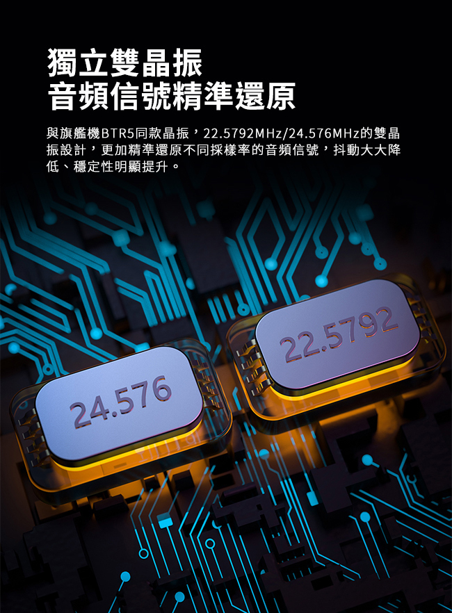搭配精心設計的獨立雙DAC耳擴晶片,分別負責左右聲道的解碼和驅動,