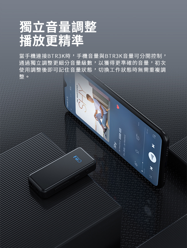 採用獨立按鍵設計,可與手機分別進行音量調整,個別控制以獲得更精確的音量。