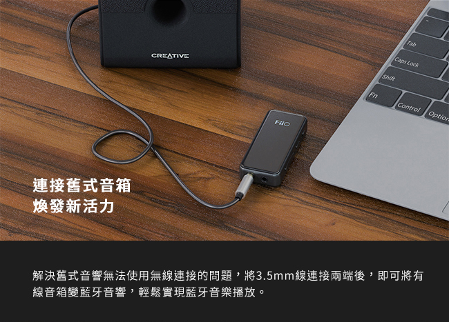 解決舊式家用或車用的有線音響無法使用無線連接的問題,將3.5mm線連接兩端插孔後即可將有線音箱變藍牙音響,輕鬆實現藍牙音樂播放。