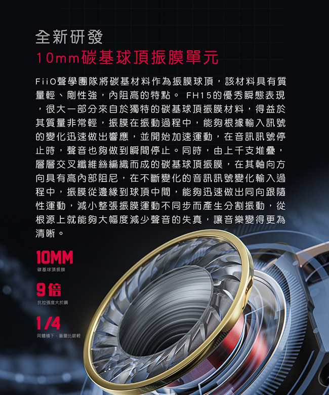 ● 美國樓氏ED+RAD動鐵+10mm碳基球頂振膜動圈