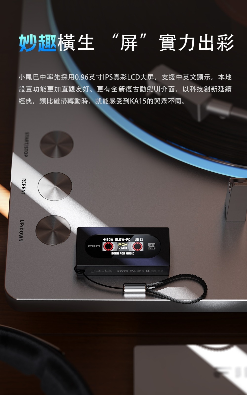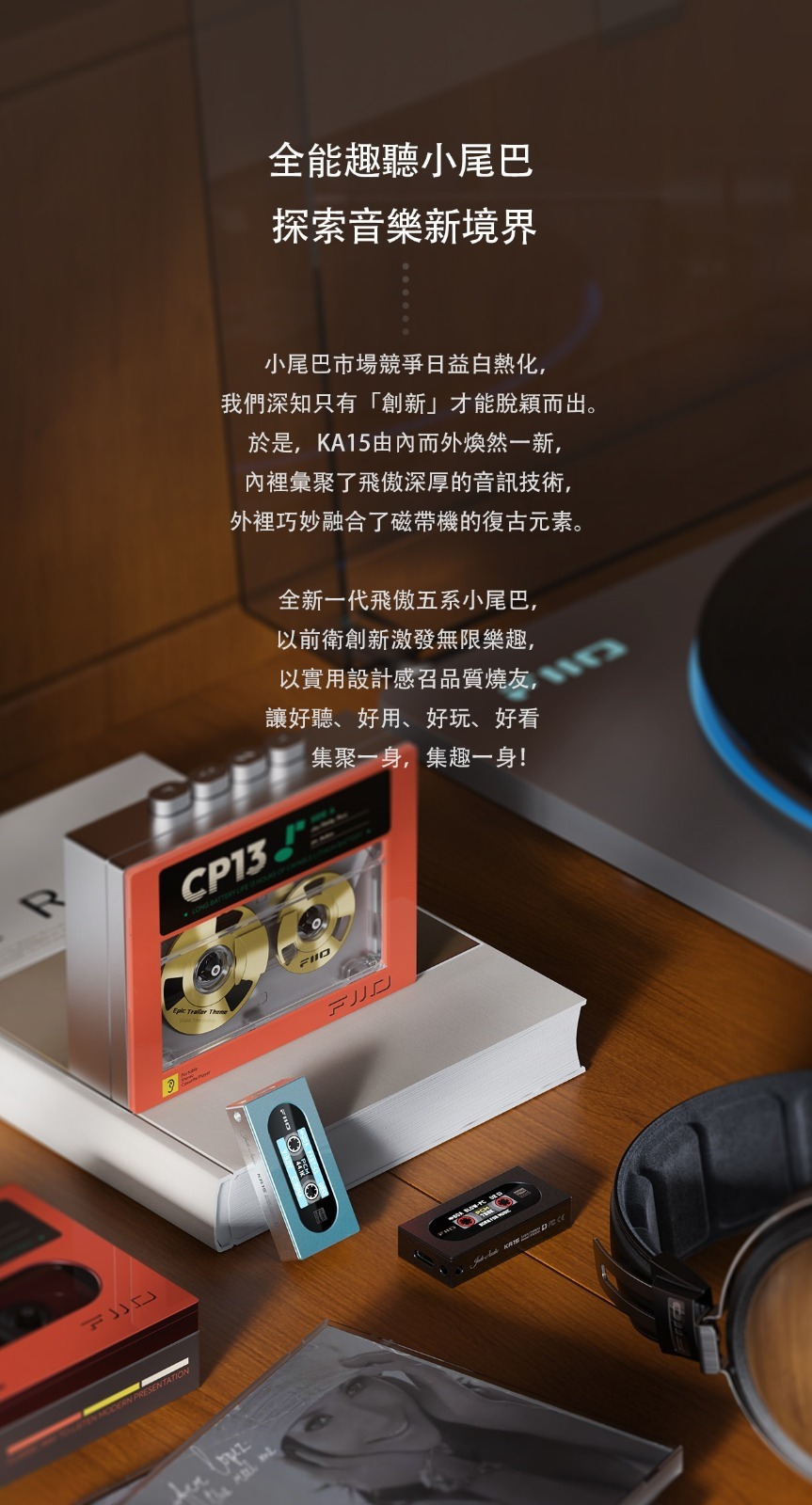 小尾巴市場競爭日益白熱化,我們深知只有「創新」才能脫穎而出。 於是,KA15由內而外煥然一新,內裡彙聚了FiiO 深厚的音訊技術,外裡巧妙融合了磁帶機的復古元素。