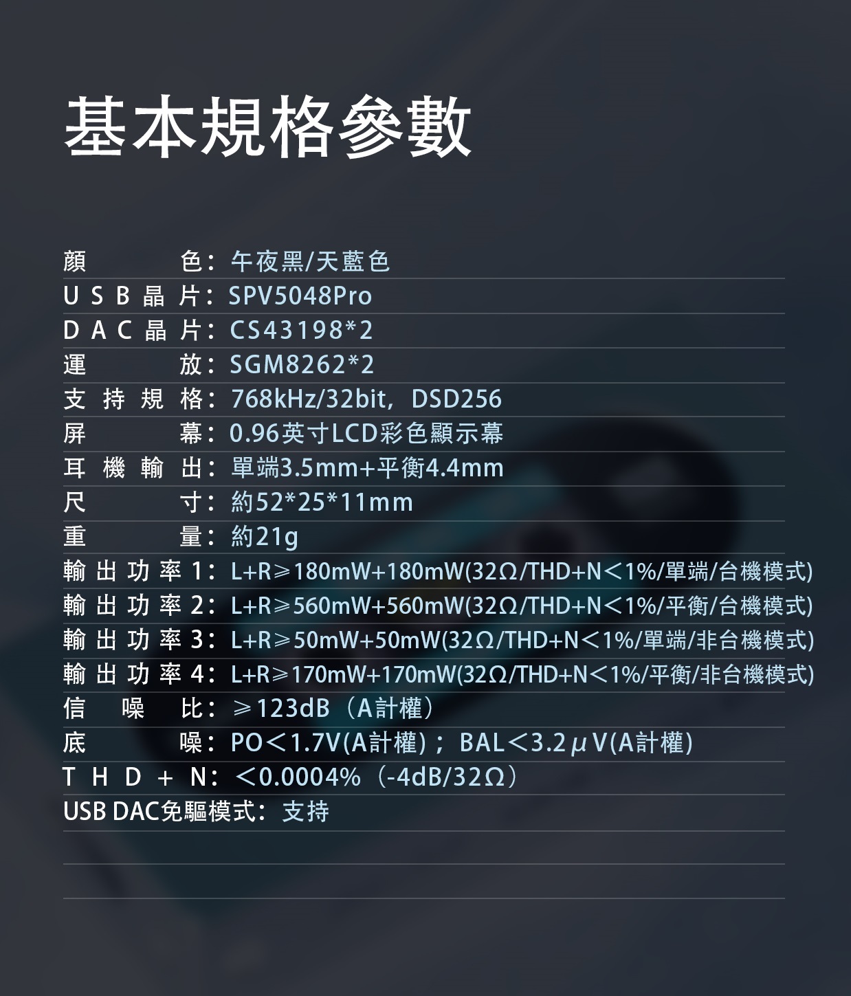 顏色:午夜黑/天藍色 USB晶片:SPV5048Pro DAC