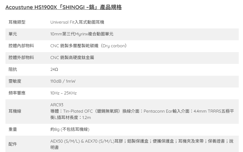 Acoustune HS1900X 「SHINOGI –鎬」產品重點