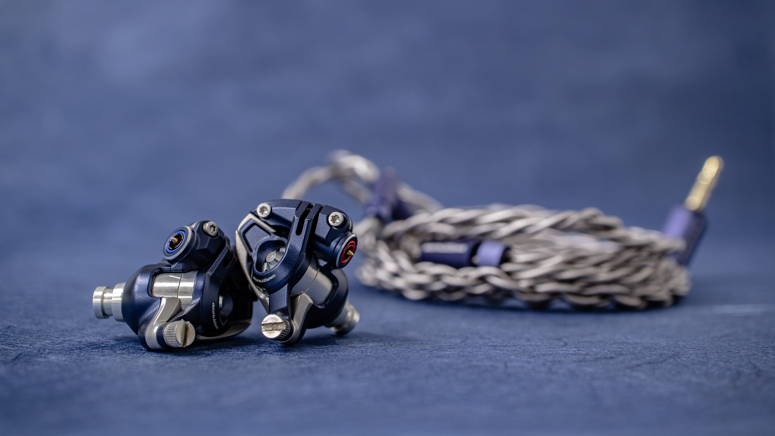 每次 Acoustune 出新耳機,都會有不同款耳機線伴隨,來到 HS2000MX亦不例外,導體、芯數、編織方式都經過等多方面反複調製,考慮聲音與配戴感的平均之下,最終採用了獨立發售的 4 絞升級線 ARS100系列為基本,換上用 16 芯鍍銀 OFC 線與極幼 OFC 線混編的結構,以及 Pentaconn Ear 端子插頭。為配合整體感覺,線材上的金屬部件,包括連接器、分線器、耳機頭等金屬部件亦同時改成靛藍色,令耳機有更好的一體性,營造出奢華的完整感覺。