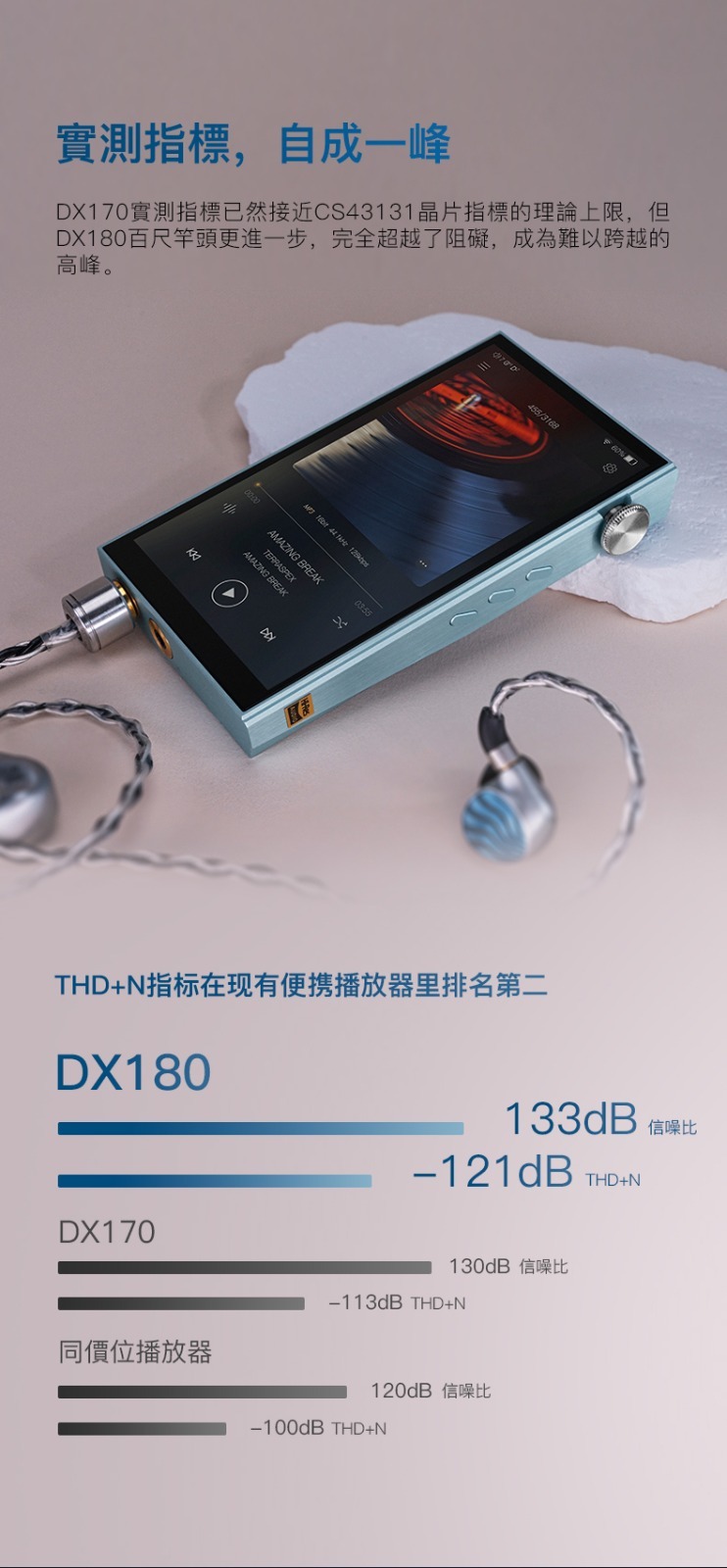 DX170實測指標已然接近CS43131芯片指標的理論上限,但DX180百尺竿頭更進一步,完全超越了阻礙,成為難以逾越的高峰。